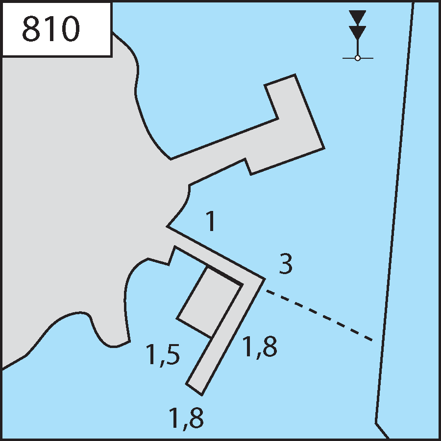 Kiinnittyminen: Ankkuri. Syvyys n. 2 m.